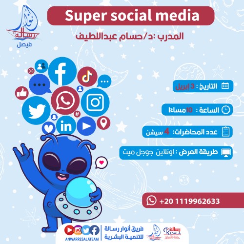 تصاميم سوشيال ميديا لجمعية رسالة الخيرية في مصر .. يتم الإعلان عن كورسات مجانية عن طريق تصميم تصاميم جذابة واحترافية