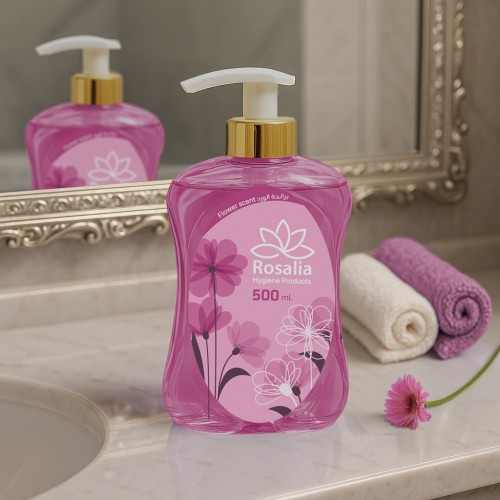 تصميم ستيكر لسائل أيدي روزاليا بأسلوب أنيق وجذاب يعكس فخامة المنتج، مع اختيار ألوان وتفاصيل بصرية متناسقة تعبّر عن النعومة والانتعاش، ليمنح العبوة مظهراً احترافياً يلفت انتباه العملاء.